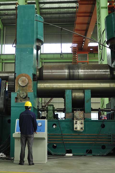 水平下调式三辊卷板机可用于将一定厚度的金属板材卷制成筒状、弧形或一定锥度的工件。该设备可用于大型厚壁承压设备、化工压力容器等产品的筒体卷制和焊后校圆,